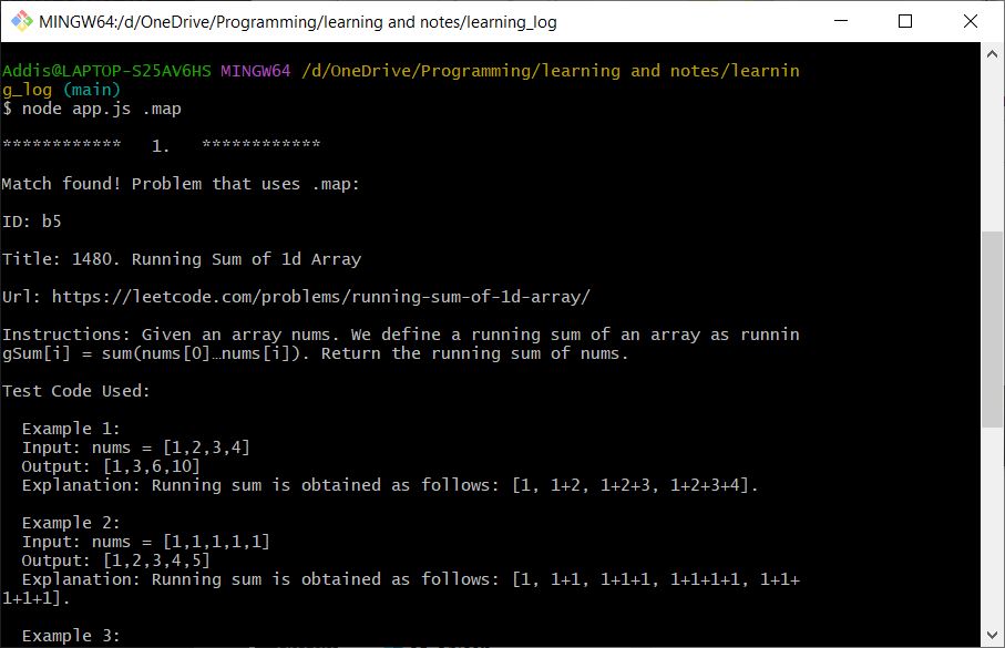 This project is a running log of completed coding challenges. It is meant as learning aid. The goal is to keep track of the challenge, how I solved it, and what the best practice is. 'Tags' are also used to document different methods used to solve issues. The app is executed via node. View more details on GitHub