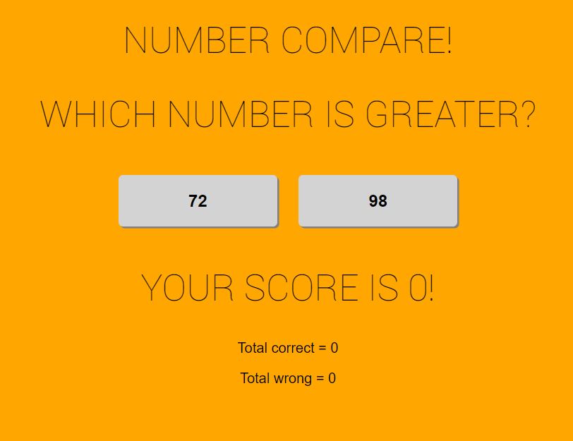 A simple project to help my 6 year old daughter compare numbers, and discourage guessing. Which number is greater or less? Read more about it on GitHub. See the project in action at number-compare.addisondubay.com